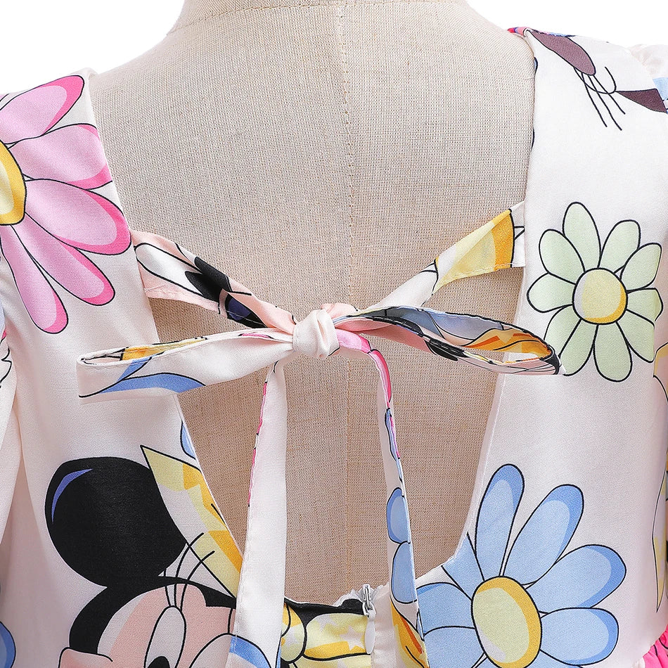 Disney Mickey Girl Dress Kids Toddler Mickey Minnie Mouse Daisy Cartoon Puff Sleeve Clothes Backless Cute Dresses